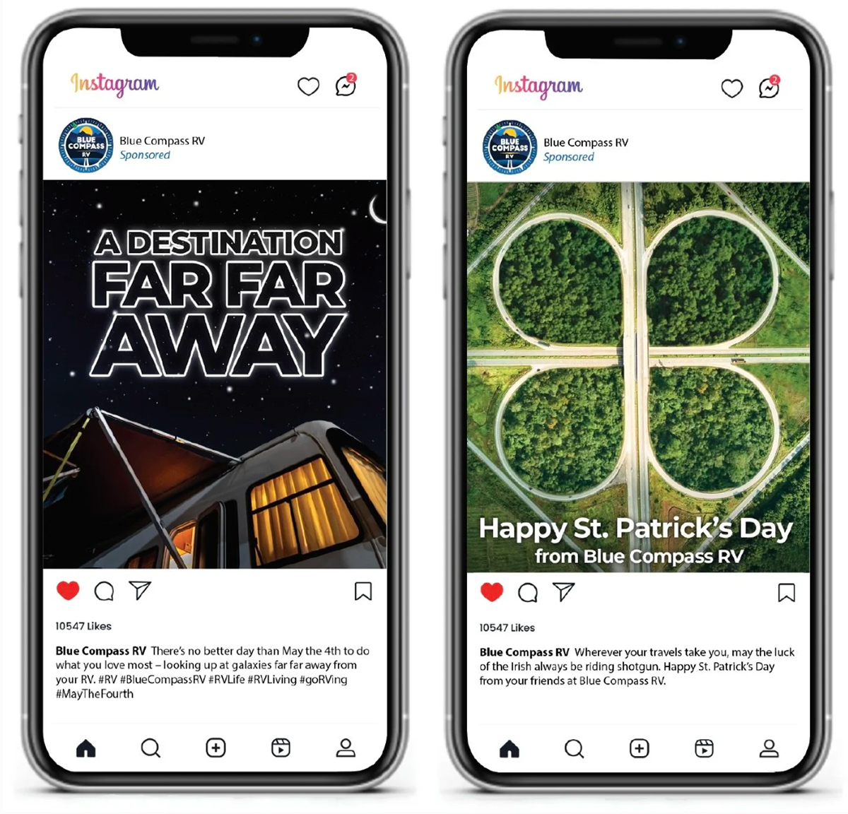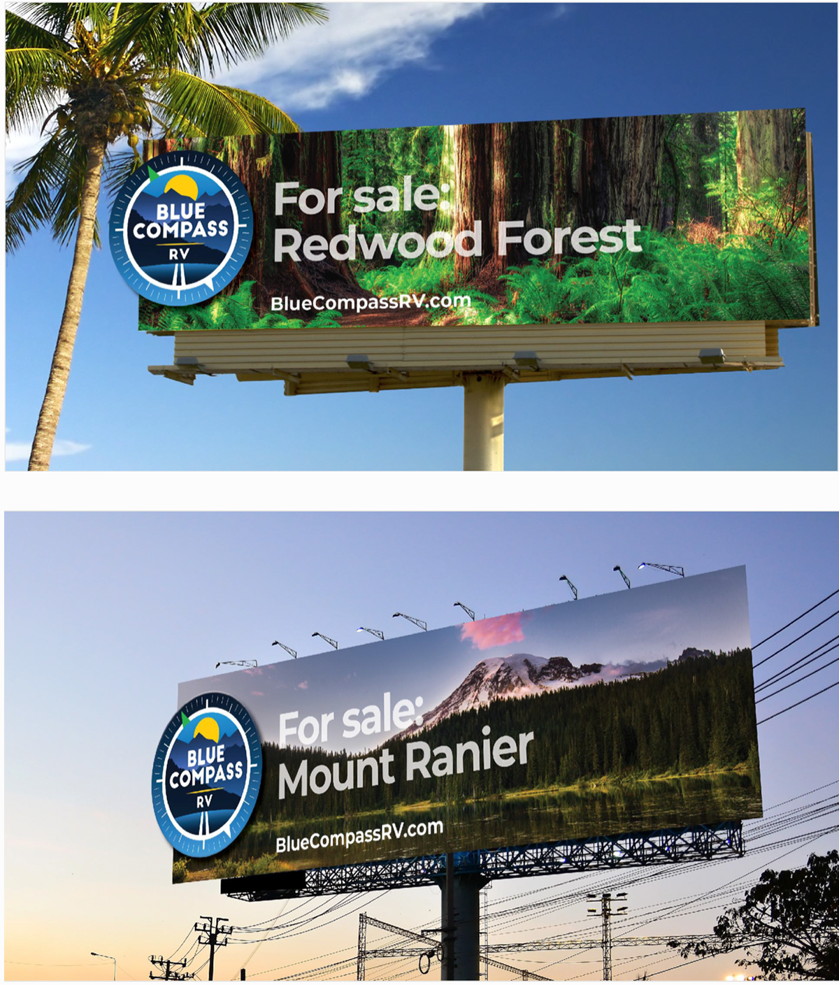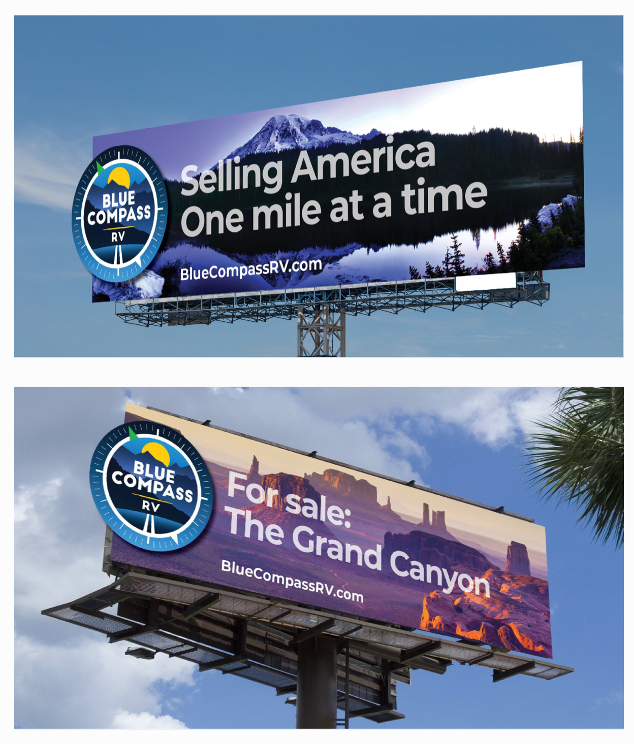 Idea: In an industry not known for customer service, Blue Compass set out with a mission: to create a brand that supported customers wherever their journey led. Every mile. Every day. We needed to transform one-time RV engagements/ sales into lasting customer relationships that offer 24-hour service, on or off the road. We developed the brand name, market positioning, and visual identity, including logo creation and comprehensive branding. Building on this foundation, we designed and executed a robust 360-degree campaign across traditional, digital, and social media channels highlighting extraordinary RV adventures, while reinforcing the message that Blue Compass RV is a trusted companion for customers on all their journeys.