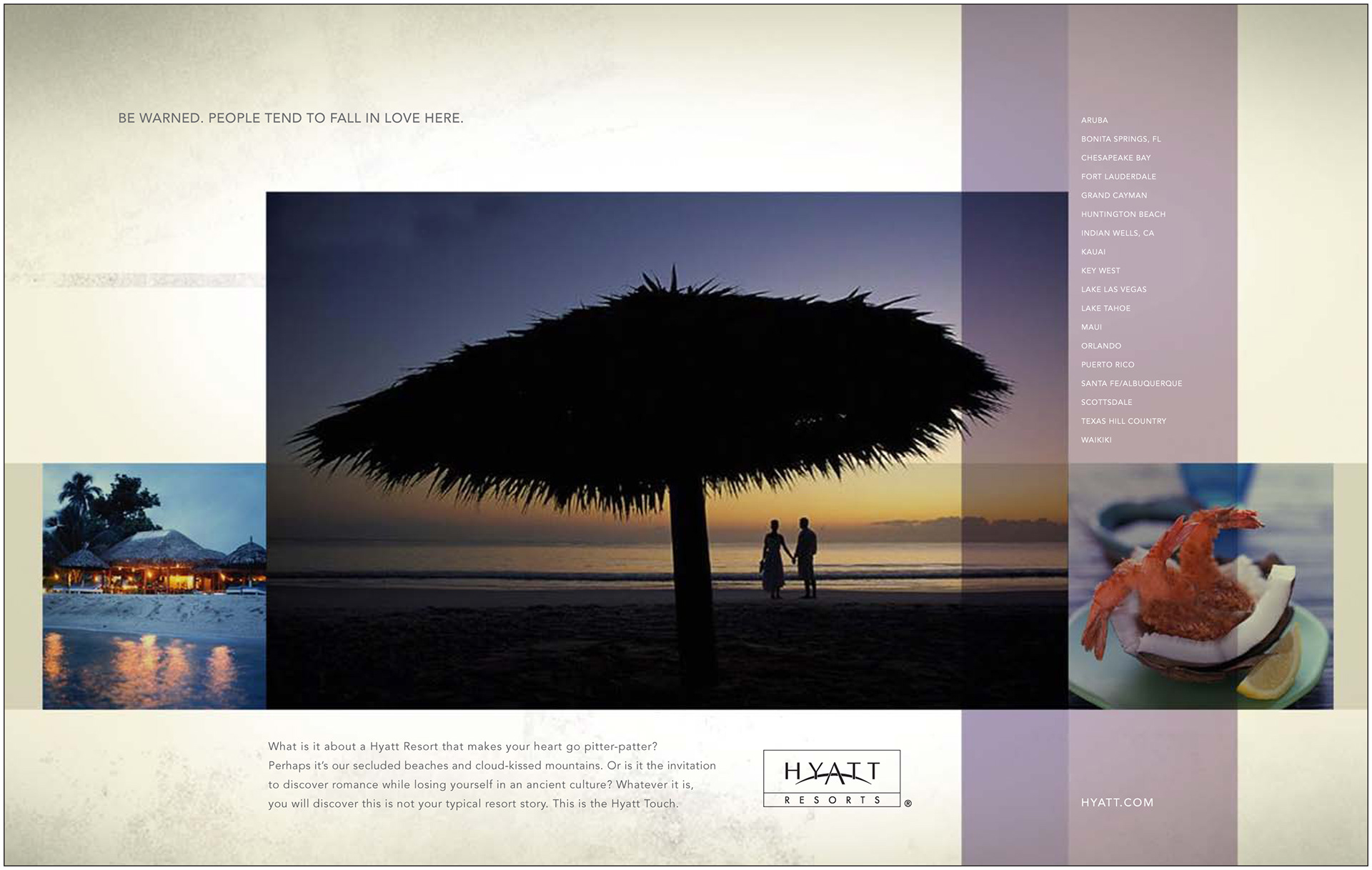 What is it about a Hyatt Resort that makes your heart go pitter-patter? Perhaps it’s our secluded beaches and cloud-kissed mountains. Or the invitation to discover romance while losing yourself in an ancient culture. Whatever it is, you will discover this is not your typical resort story. This is the Hyatt Touch.