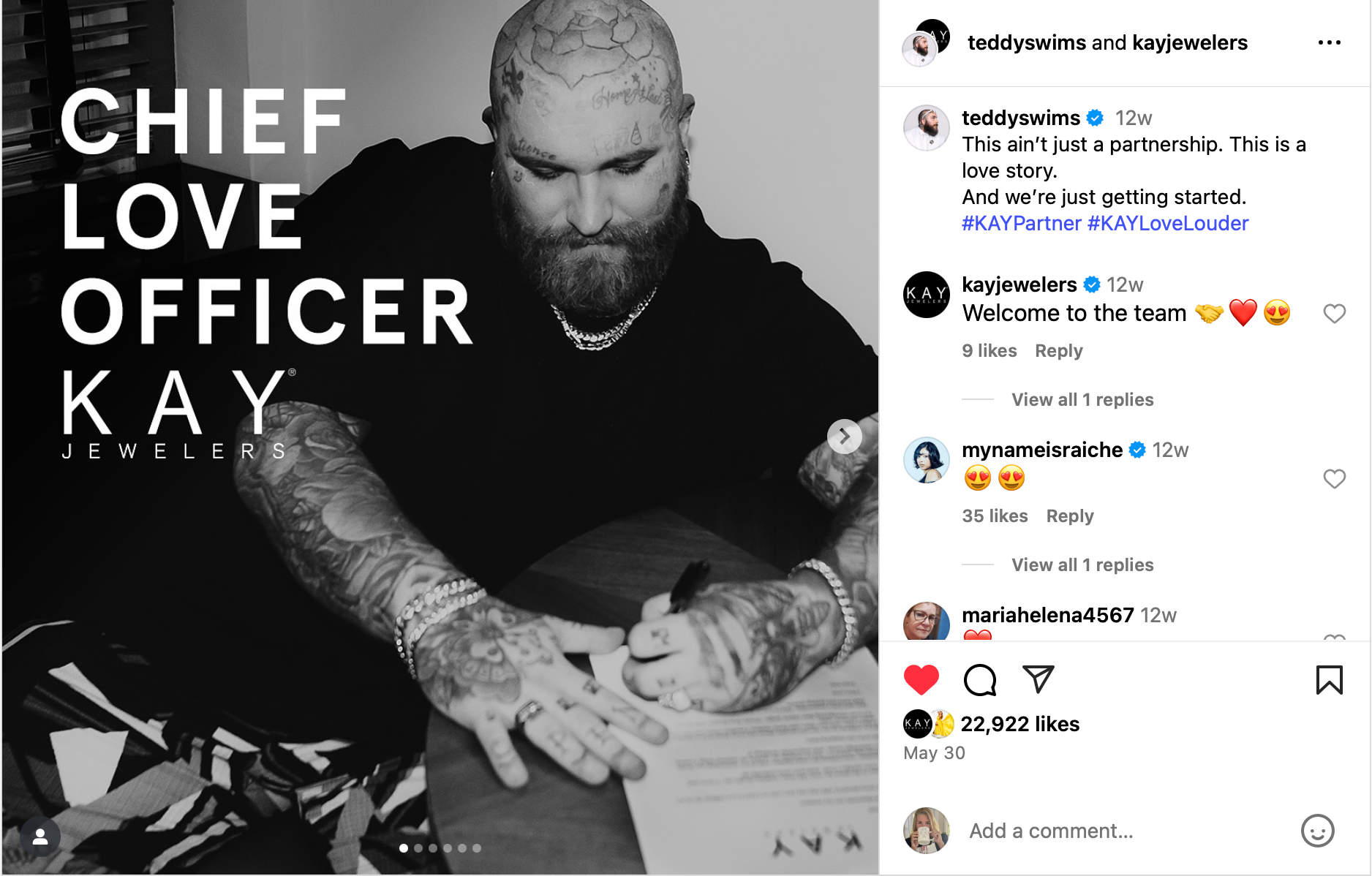 Overview: To connect with Gen Z, we partnered KAY Jewelers with Grammy-nominated artist and style icon, Teddy Swims. Teddy’s soulful sound, fearless fashion, and authentic vibes brought a fresh energy to the classic brand, helping KAY redefine love and self-expression for a new generation.